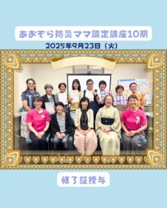 あおぞら防災ママ認定講座〜10期生修了〜新着!!